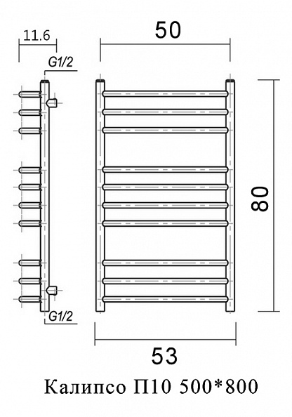 Полотенцесушитель водяной Domoterm Калипсо 52x80 П10 500*800 хром