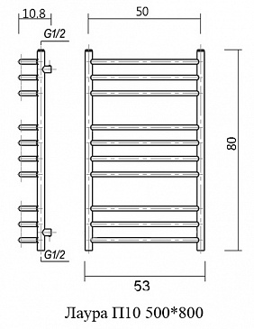 Полотенцесушитель водяной Domoterm Лаура 53x80 П10 500*800 хром