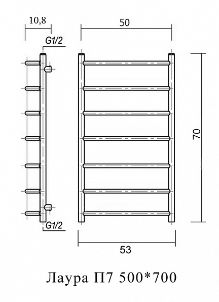 Полотенцесушитель водяной Domoterm Лаура 53x70 П7 500*700 хром
