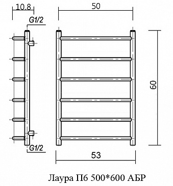 Полотенцесушитель водяной Domoterm Лаура 50x60 П6 500*600 АБР бронза