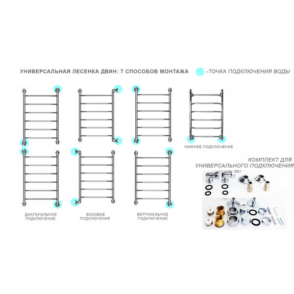 Водяные полотенцесушители Двин обладают высокой надежностью и доступной ценой, форма двухсекционная "лесенкой" никогда не потеряет актуальности и легко впишется в любой интерьер. Kopпyc любого полотенцесушителя изготовлен из высококлассной нержавеющей стали. Универсальное подключение.