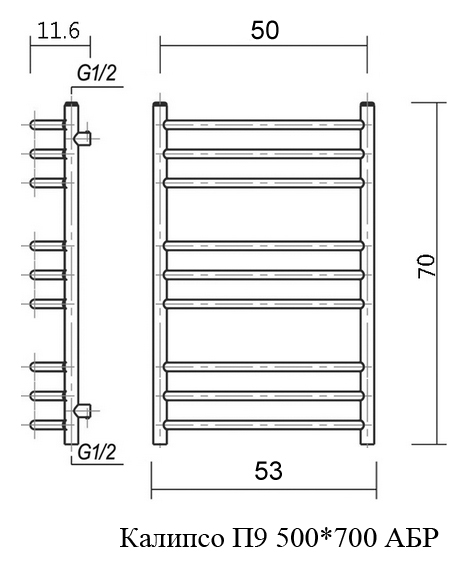 Полотенцесушитель водяной Domoterm Калипсо 50x70 П9 500*700 АБР бронза