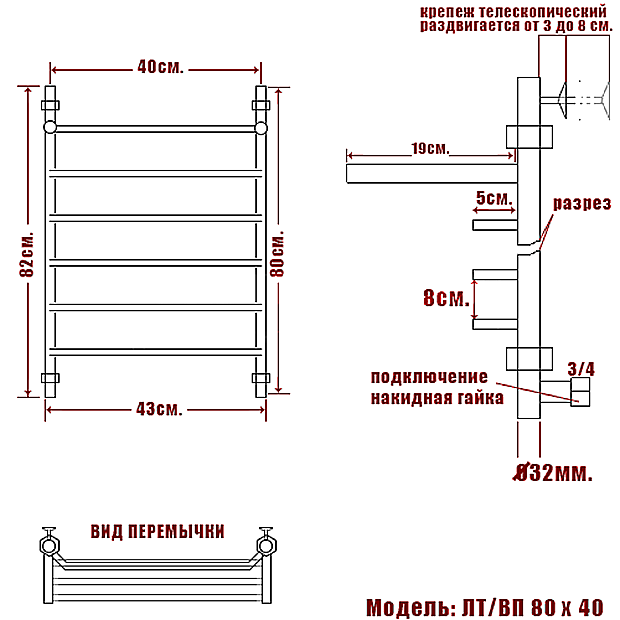 Полотенцесушитель водяной Ника TRAPEZIUM 43x82 ЛТ ВП 80/40 хром