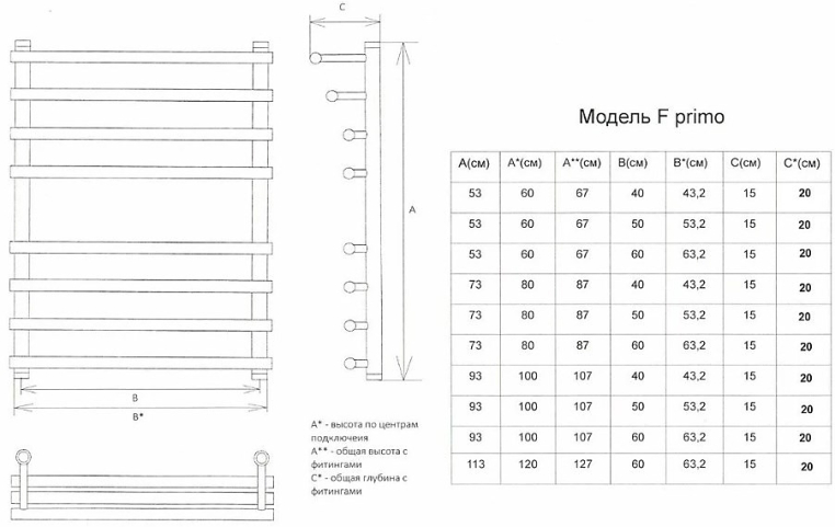 Полотенцесушитель водяной Двин F primo 53x80 4627086032815 хром