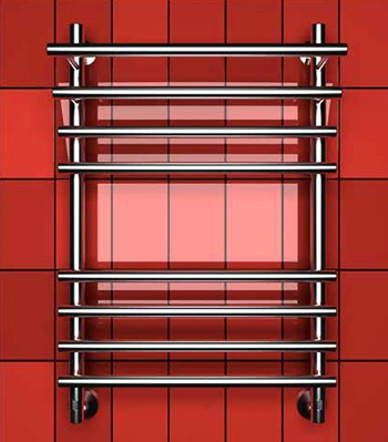 Восьмисекционный полотенцесушитель изготовлен из нержавеющей стали AISI 312 толщиной 2 мм. Верхние перекладины расположены каскадом, Нижние перекладины расположены на одном уровне, а верхние идут каскадом, для того чтобы развесить большее количество белья (чтобы оно не соприкасалось друг с другом и сохло быстрее), самая верхняя перекладина выступает на 15 см. Для удобства монтажа в комплект к полотенцесушителю входит эксцентрик, что позволяет на 0,1-1,5 см скорректировать межосевое расстояние выведенных на полотенцесушитель труб.