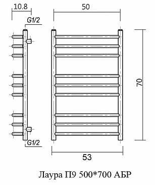 Полотенцесушитель водяной Domoterm Лаура 50x70 П9 500*700 АБР бронза