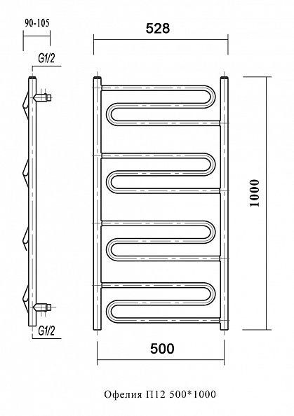 Полотенцесушитель водяной Domoterm Офелия 52x100 П12 500*1000 хром