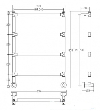 Полотенцесушители выполнены из латунных труб соответствующей формы, которые собираются, свариваются и тестируются посредством гидропневматических систем.