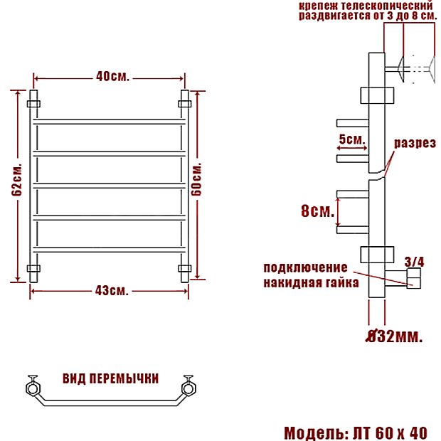 Полотенцесушитель водяной Ника TRAPEZIUM 43x62 ЛТ 60/40 хром