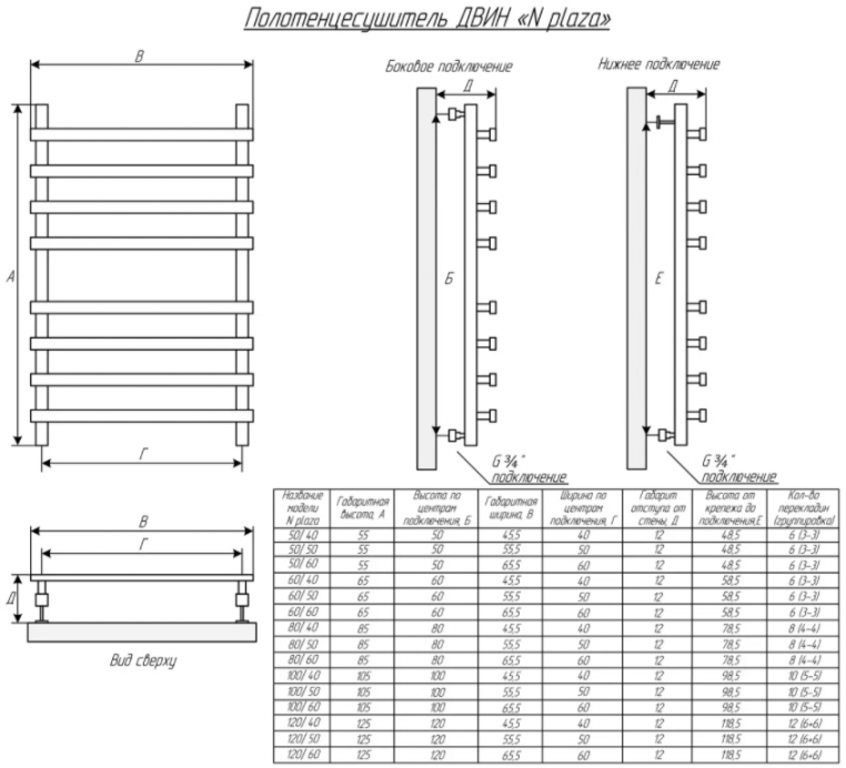 Главная отличительная черта изделий - полный комплект фурнитуры: в комплекте квадратные уголки, квадратные крепежи и квадратные отражатели. Лесенки серии Plaza так же как и другие полотенцесушители ДВИН имеют универсальное подключение - нижнее, боковое, диагональное.