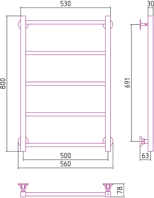 Водяной полотенцесушитель «Стилье Версия-КН» 80x50 отличает строгая прямоугольная конструкция из пищевой нержавеющей стали AISI 304. Для удобного размещения банного текстиля модель оборудована пятью перекладинами. Изделие характеризуется повышенной теплоотдачей и предусматривает нижнее подключение. В наборе комплект телескопических кронштейнов, 2 спускных клапана и отражатели.