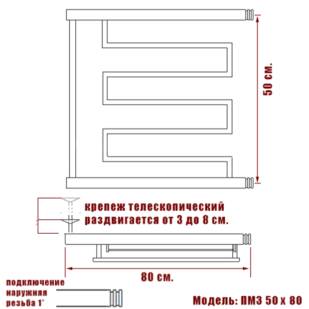 Полотенцесушитель водяной Ника ECON 80x53 ПМ 3 50/80 хром