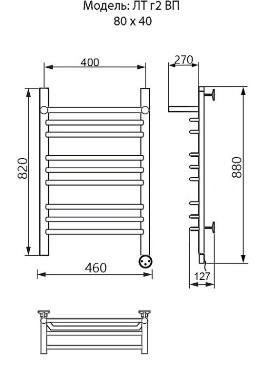 Полотенцесушитель водяной Ника TRAPEZIUM 43x82 ЛТ Г2 ВП 80/40 хром