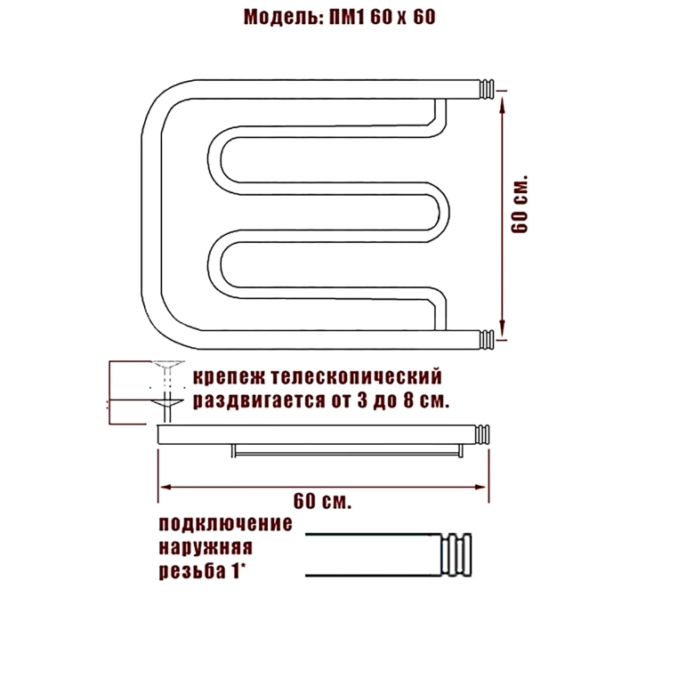 Полотенцесушитель водяной Ника ECON 60x63 ПМ 60/60 бронза