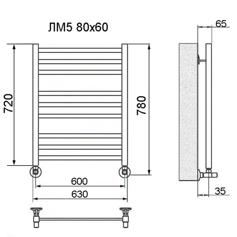Полотенцесушитель водяной Ника MODERN 63x80 ЛМ 5 80/60 хром