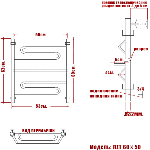 Полотенцесушитель водяной Ника CURVE 53x62 ЛЗТ 60/50 хром