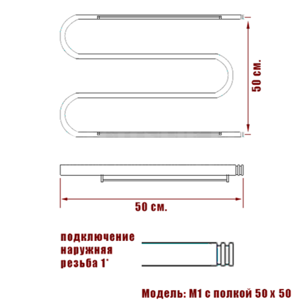 Полотенцесушитель водяной Ника SIMPLE 50x53 М 50/50 с полкой хром