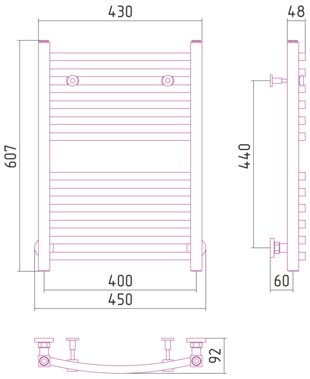 Полотенцесушитель водяной Сунержа Аркус 45x60 01-0251-6040 хром