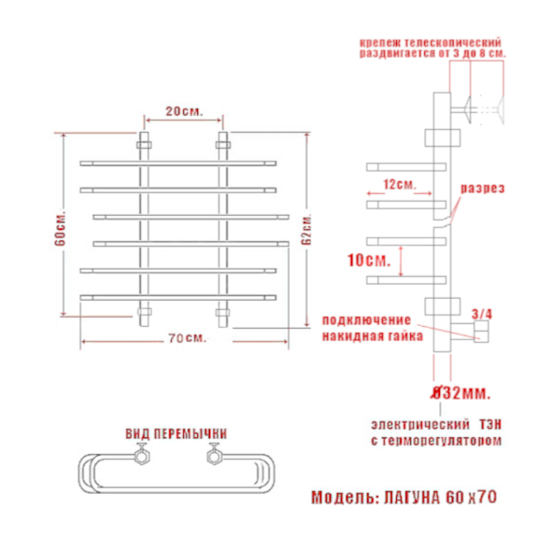 Полотенцесушитель водяной Ника MIX 70x62 Лагуна 60/70 хром