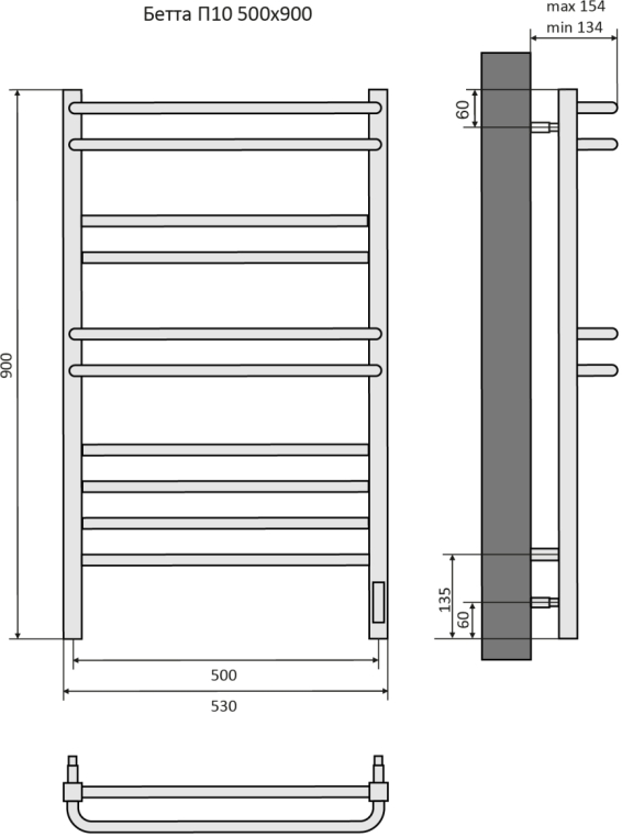 Полотенцесушитель электрический Aquatek Бетта П10 500х900 AQ EL KRC1090CH