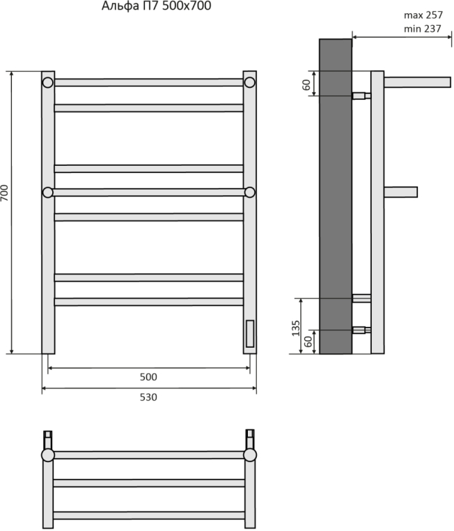 Полотенцесушитель электрический Aquatek Альфа П7 500х700 AQ EL RRP0770BL