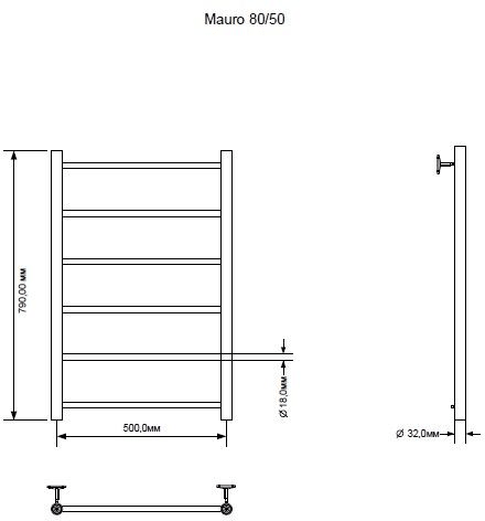 Полотенцесушитель электрический Aquanet Mauro 80х50 Тэн справа 00282003