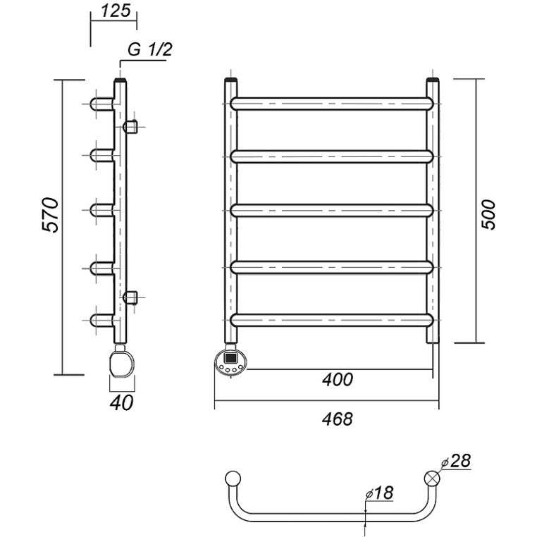 Полотенцесушитель электрический Domoterm Стефано П5 400х500 Абр EL Тен слева, Античная бронза
