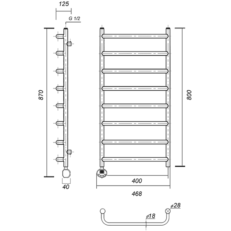 - Размеры, ВхШхГ, мм: 800х400х125