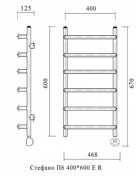 Полотенцесушитель электрический Domoterm Стефано П6 400х600 ER Тен справа, хром
