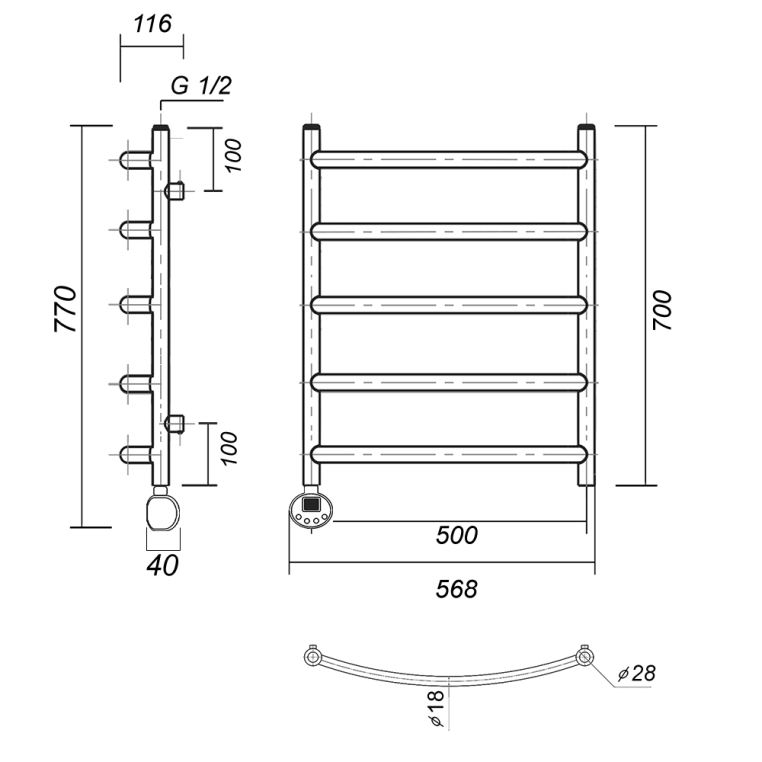 Полотенцесушитель электрический Domoterm Калипсо П5 500х700 Абр EL Тен слева, Античная бронза