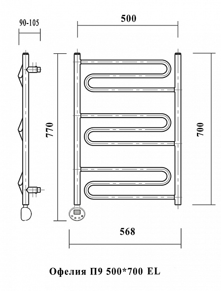 Полотенцесушитель электрический Domoterm Офелия П9 500х700 EL Тен слева, хром