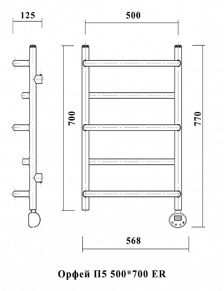 Полотенцесушитель электрический Domoterm Орфей П5 500х700 ER Тен справа, хром