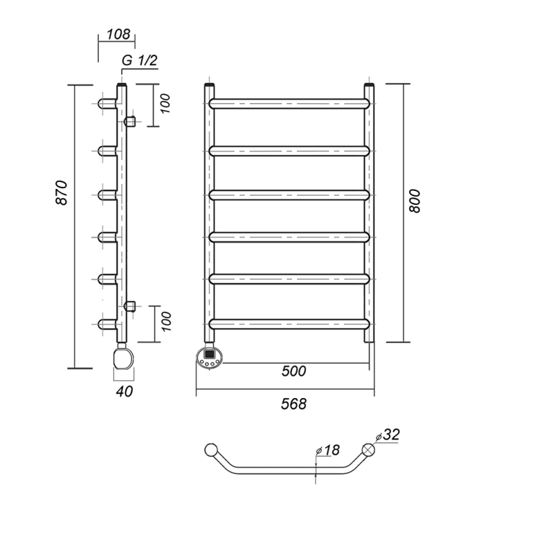 Полотенцесушитель электрический Domoterm Лаура П6 500х800 EL Тен слева, хром