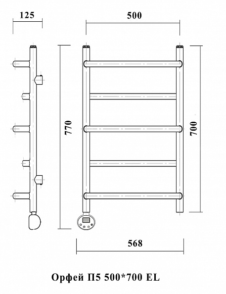 Полотенцесушитель электрический Domoterm Орфей П5 500х700 EL Тен слева, хром