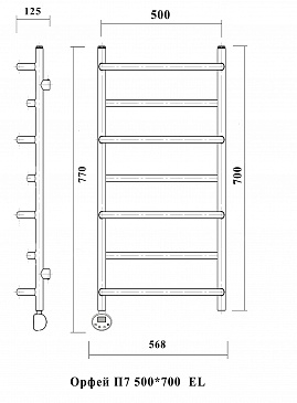 Полотенцесушитель электрический Domoterm Орфей П7 500х700 EL Тен слева, хром
