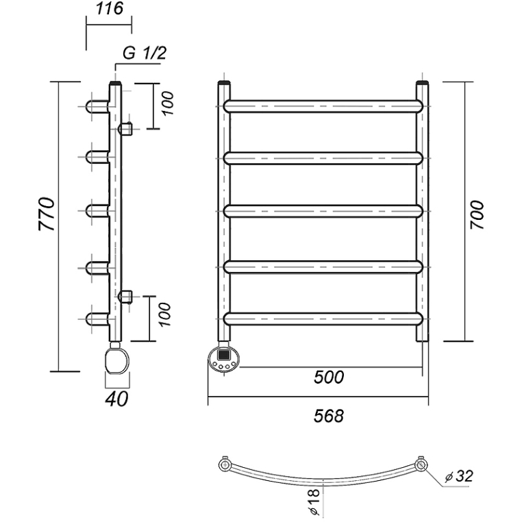 Полотенцесушитель электрический Domoterm Калипсо П5 500х700 EL Тен слева, хром