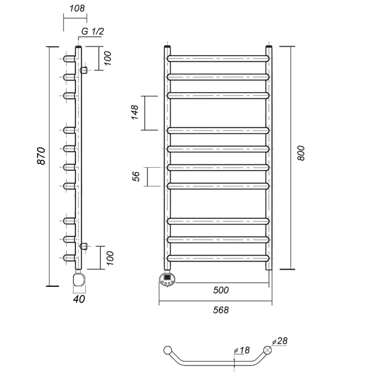 Полотенцесушитель электрический Domoterm Лаура П10 500х800 Абр EL Тен слева, Античная бронза