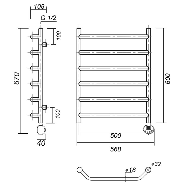 Полотенцесушитель электрический Domoterm Лаура П6 500х600 ER Тен справа, хром