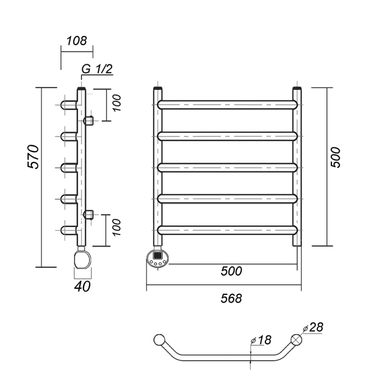 Полотенцесушитель электрический Domoterm Лаура П5 500х500 Абр EL Тен слева, Античная бронза