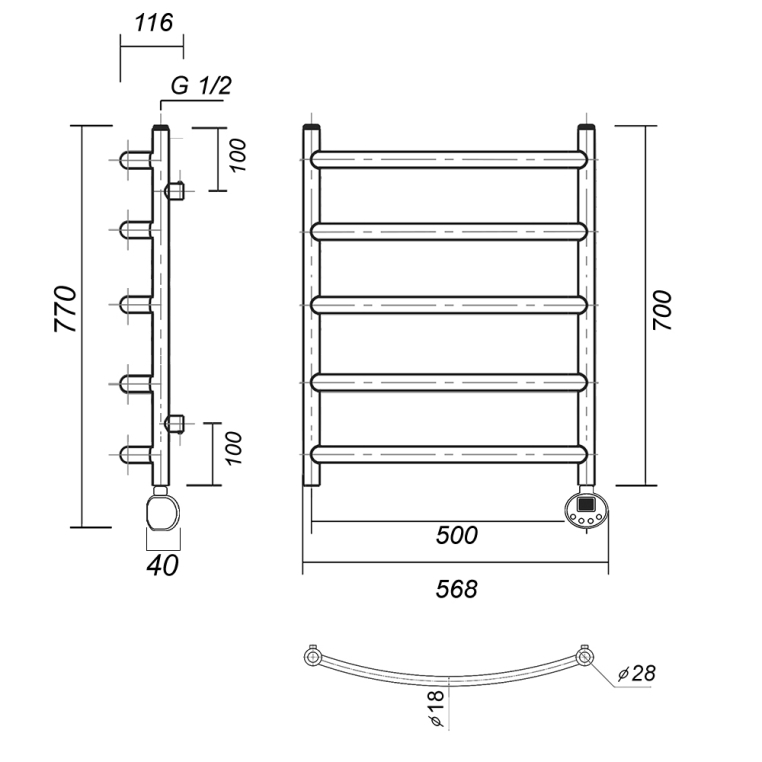 Полотенцесушитель электрический Domoterm Калипсо П5 500х700 Абр ER Тен справа, Античная бронза