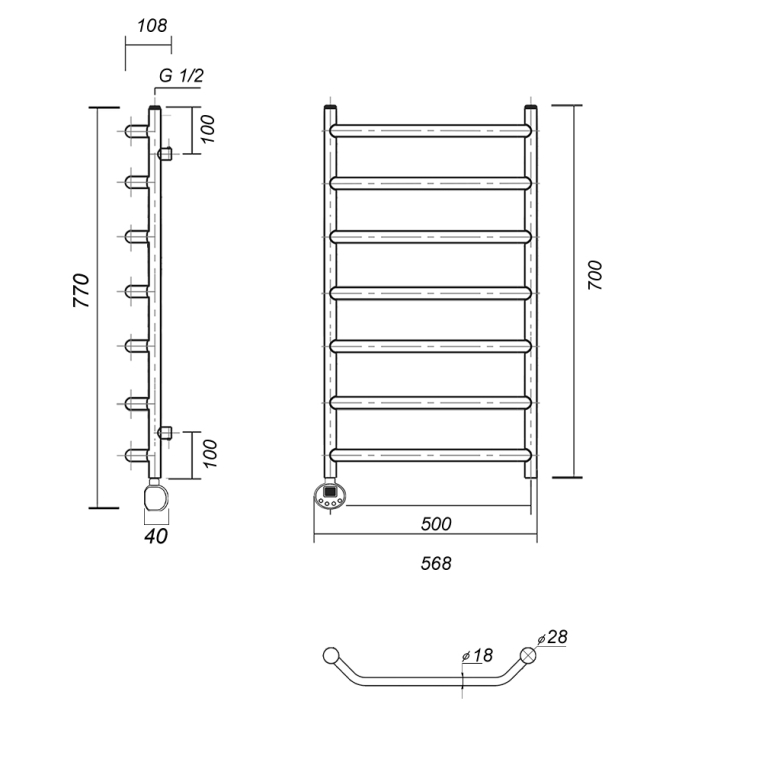 Полотенцесушитель электрический Domoterm Лаура П7 500х700 Абр EL Тен слева, Античная бронза