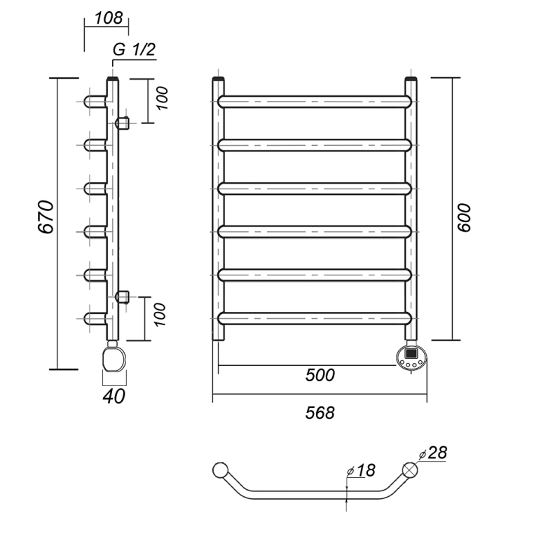 Полотенцесушитель электрический Domoterm Лаура П6 500х600 Абр ER Тен справа, Античная бронза