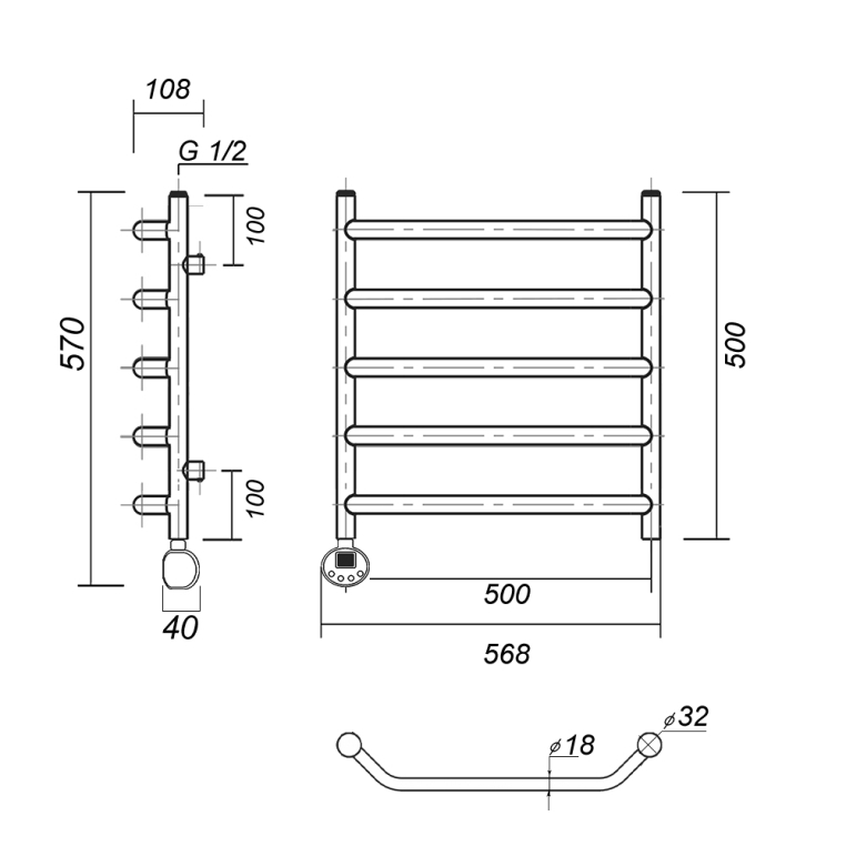 Полотенцесушитель электрический Domoterm Лаура П5 500х500 EL Тен слева, хром