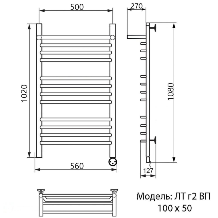 Полотенцесушитель Электрический Ника TRAPEZIUM 1000х530 хром (ЛТ Г2 ВП 100/50 прав)