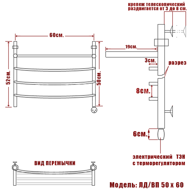 Полотенцесушитель Электрический Ника ARC 500х630 хром (ЛД ВП 50/60 прав)
