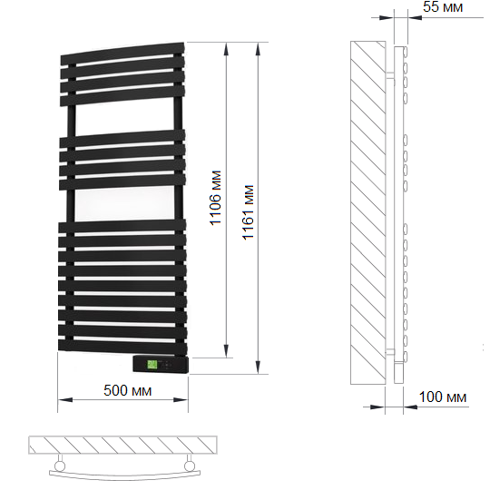 Полотенцесушитель Rointe D Series электрический, 450 Вт, цвет графитовый (DTE045SEB)