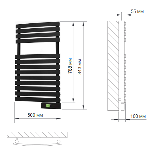Полотенцесушитель Rointe D Series электрический, 300 Вт, цвет графитовый (DTE030SEB)