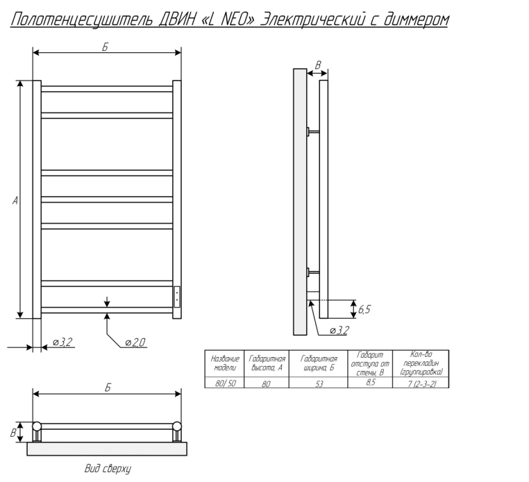 Полотенцесушитель ДВИН L neo 80/50 Электрический (1"-1/2" К диммер Белый)