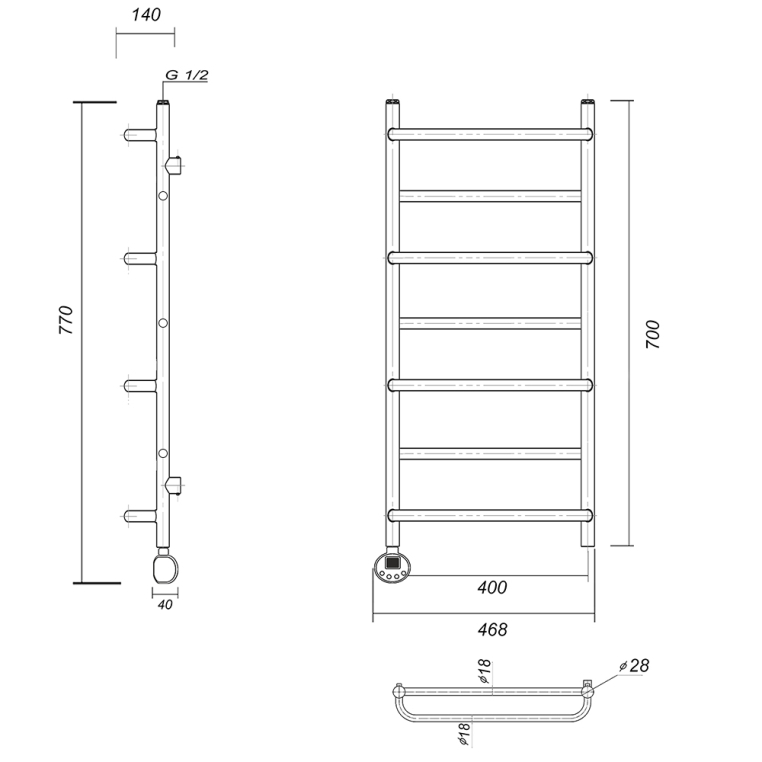 Полотенцесушитель электрический Domoterm Орфей П7 400х700 Абр EL Тен слева, Античная бронза