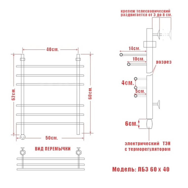 Полотенцесушитель Электрический Ника BAMBOO 600х430 хром (ЛБ 3 60/40 лев)